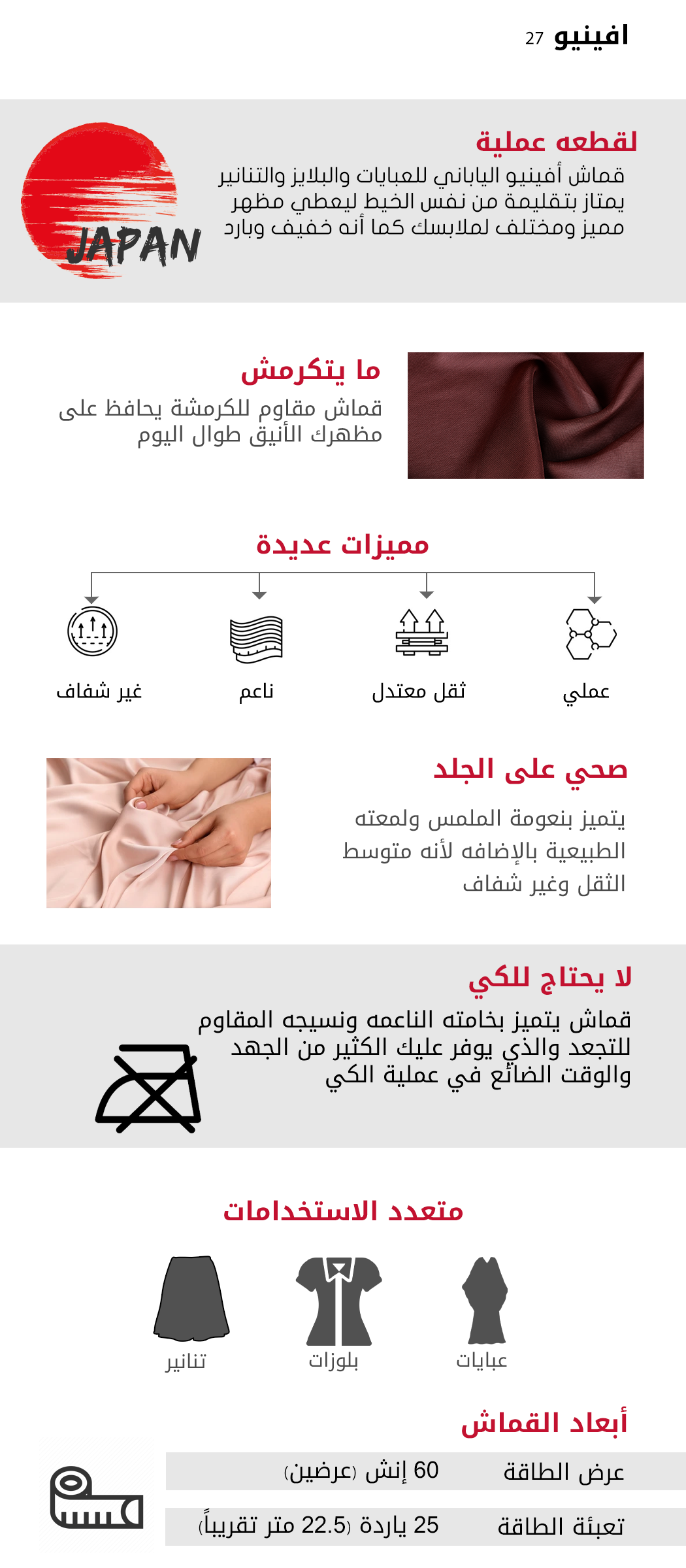 مميزات قماش أفينيو 27 :