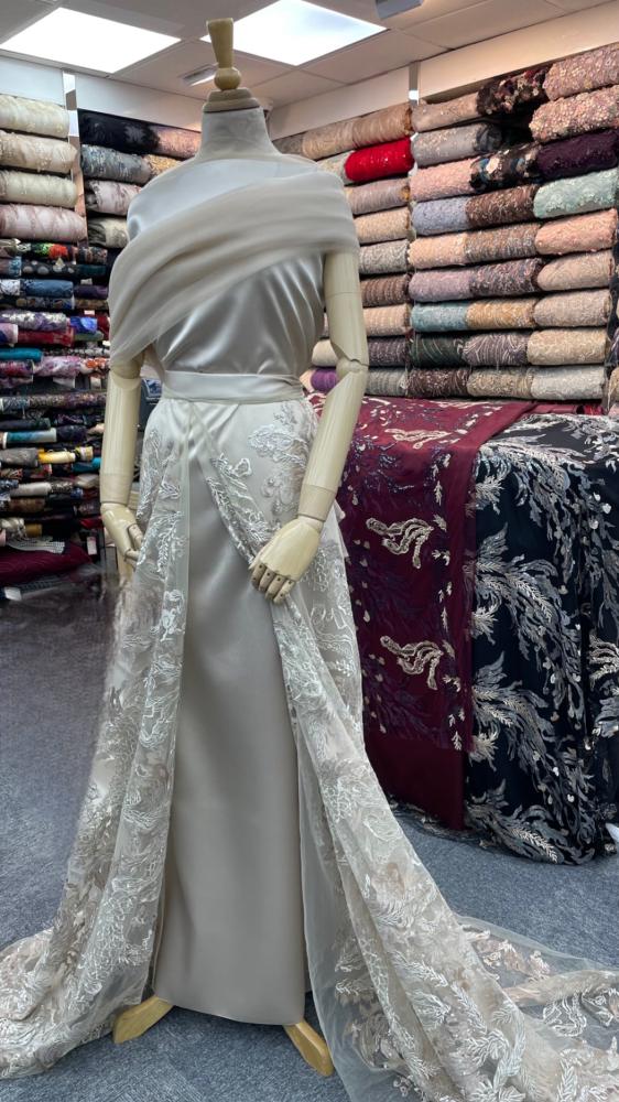 اضيفي مزيداً من الجمال لفستان سهرتك عند تصميمه من أقمشة التل المطرز والتي تحقق لكي التألق والأناقة في آنٍ واحد من خلال ألوانها البراقة وتطريزاتها الفخمة مع ملمس ناعم وانسيابي علي الجسم.