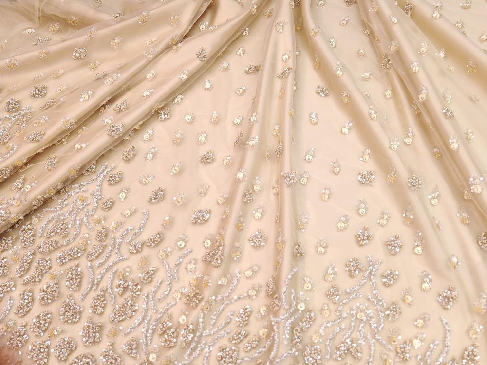 نقدم لكِ قماش التل الهندي المطرز يدويًا، بتحف فنية مرصعة بعناية باستخدام الترتر والخرز اللامع، ليمنحك لمسة من الفخامة والرقي قلّ أن تتكرر. بفضل تطريزه الدقيق وتألقه الطبيعي، يُعد هذا القماش الخيار الأمثل لتصميم فساتين السهرة الراقية التي تُحاكي أرقى التصاميم العالمية، وتمنحك حضورًا يَسحر الأنظار في كل مناسبة.