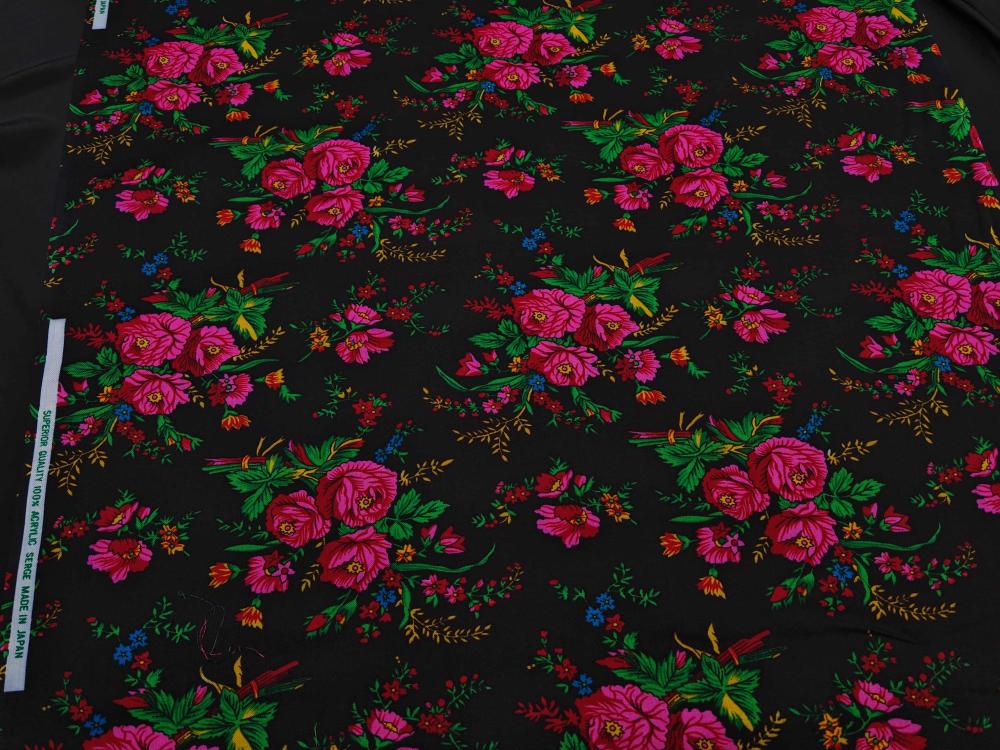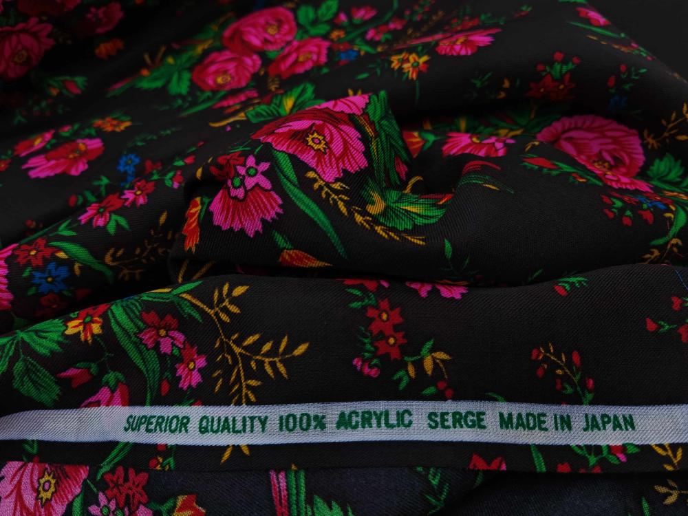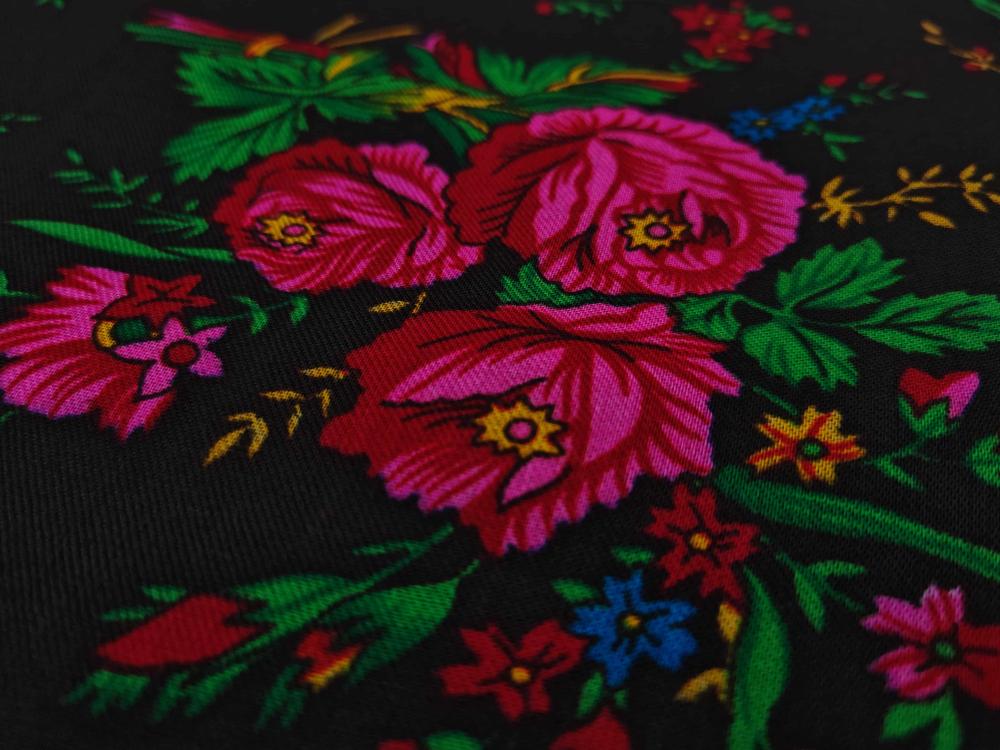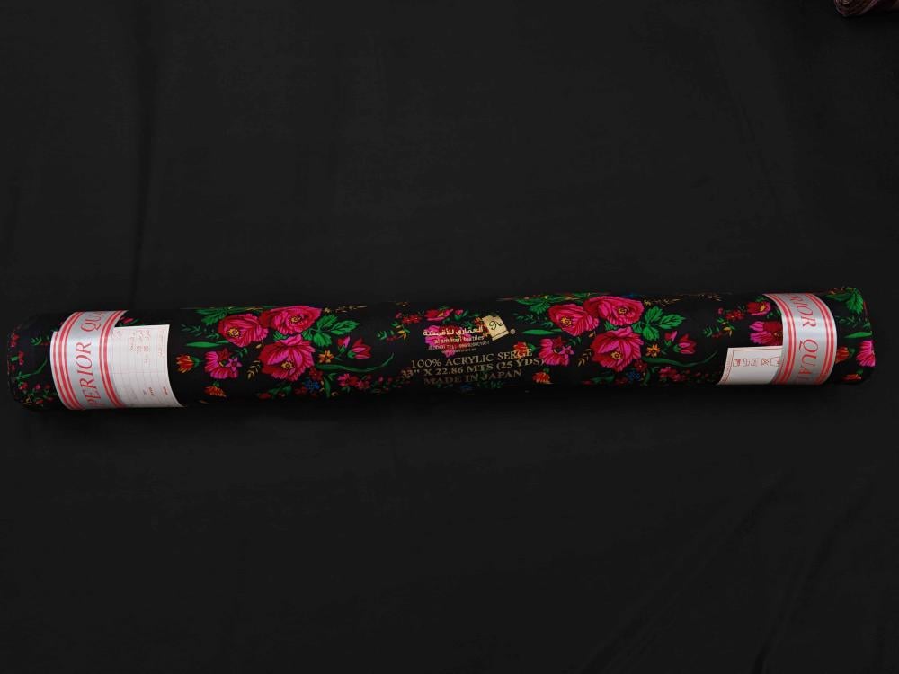 قماش شالكي أسود فاخر بنقوش زهرية ملونة زاهية، يتميز بخفة ونعومة ملمسه مع انسيابية مريحة، مناسب لأجواء شهر رمضان حيث يجمع بين الحشمة والأناقة، ويضفي لمسة راقية على العبايات والطرح والملابس الرمضانية.