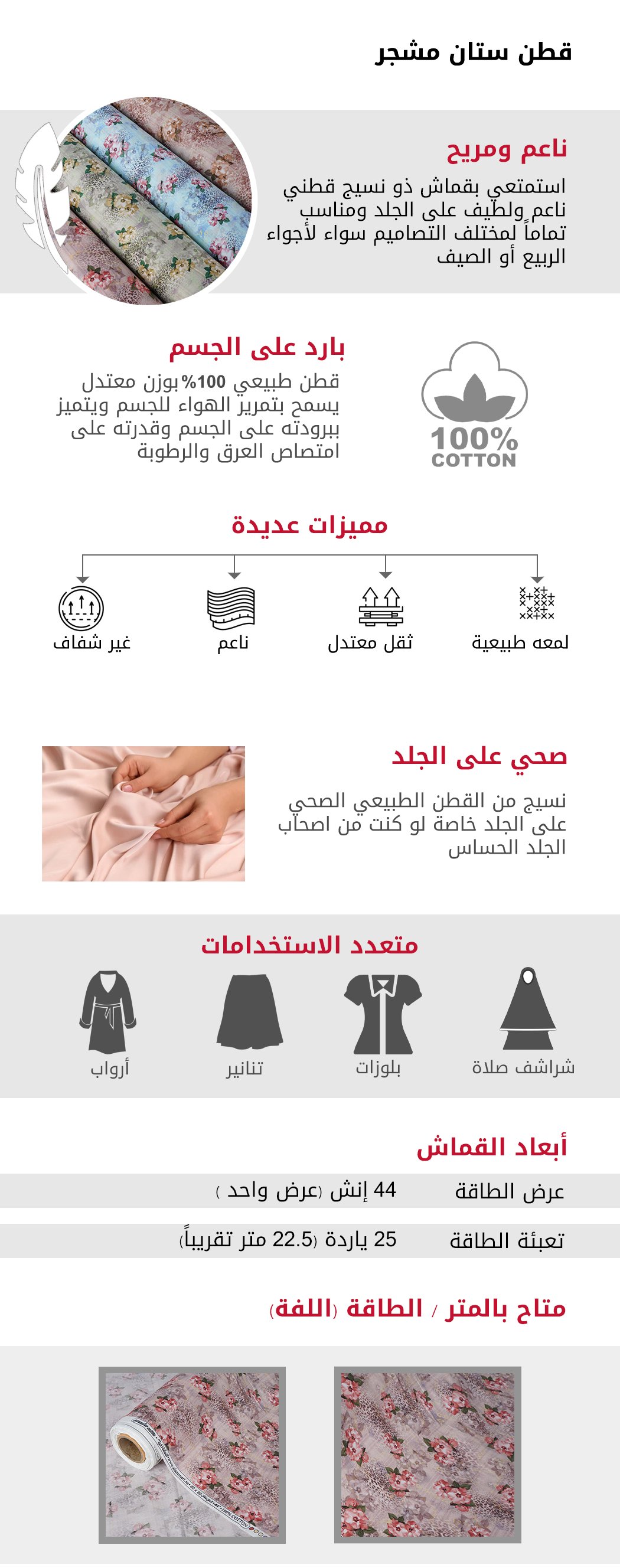 - النوع: قطن ستان مشجر – طباعة ديجيتال