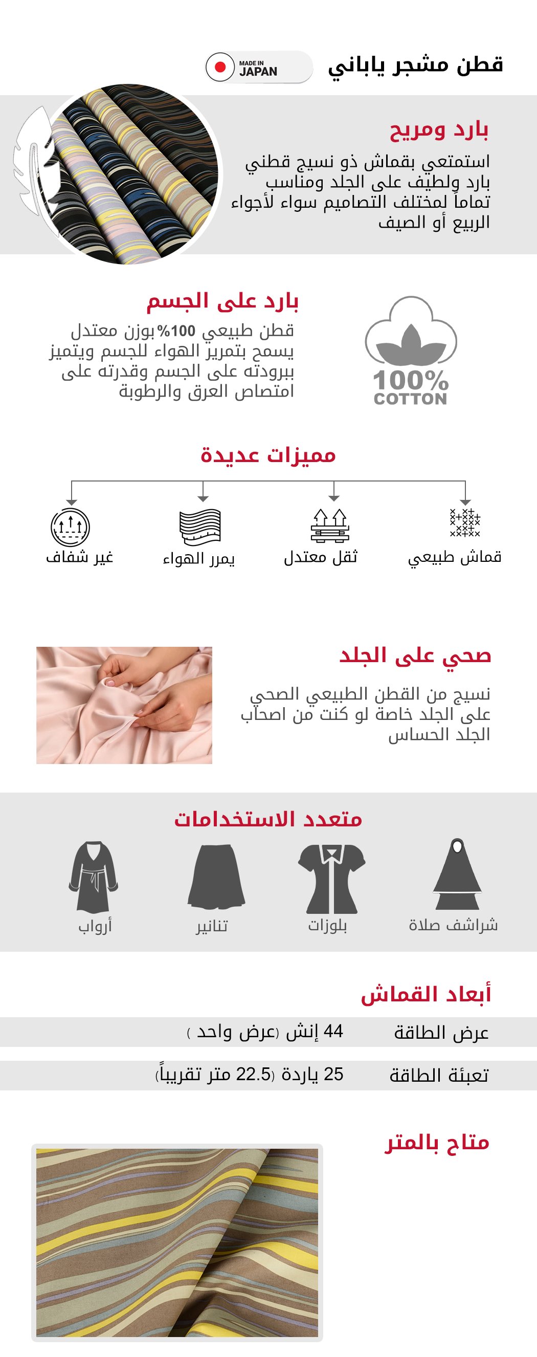 قطن ياباني 100% مصنوع من اجود انواع القطن في افضل مصانع الاقمشة في اليابان.