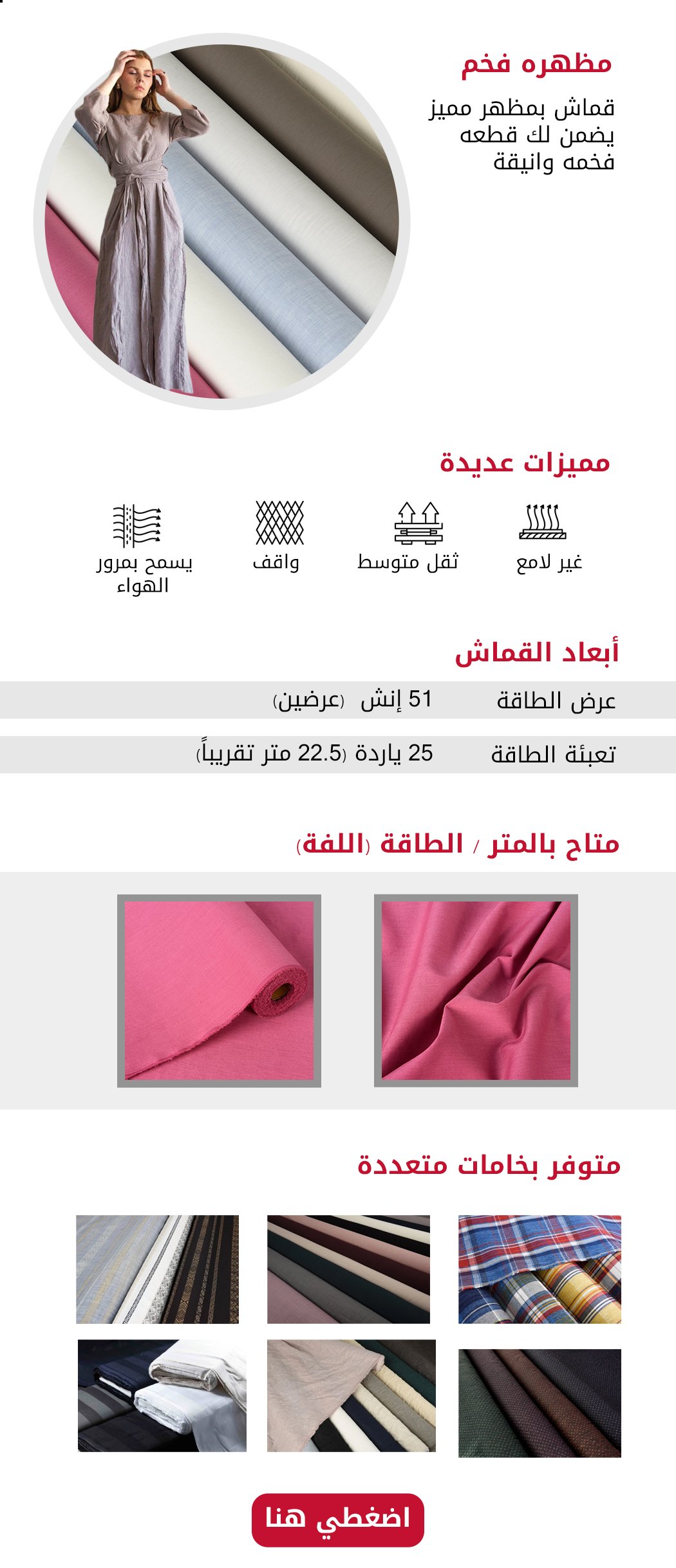 *تركيبة القماش :بوليستر 70% - 30% لينن%